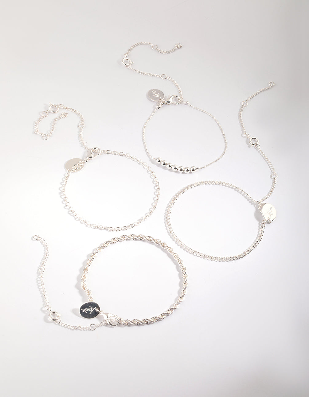 No need for boring feet, our cute anklets work a treat! Step into warm weather instyle with cute chain anklets. This pack includes four silver-toned pieces which can be worn as bracelets or anklets. Pair them with a pair of summer sandals and you're good to go!