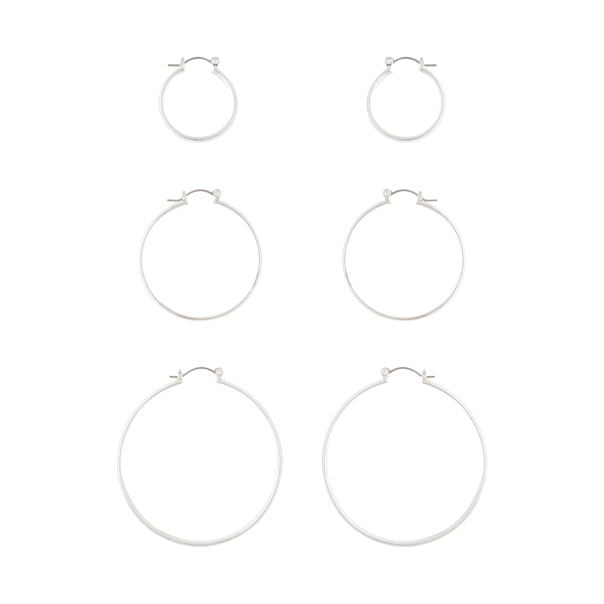 Silver Thick Hoop Gradual Earrings Trio Silver Thick Hoop Gradual Earrings Trio