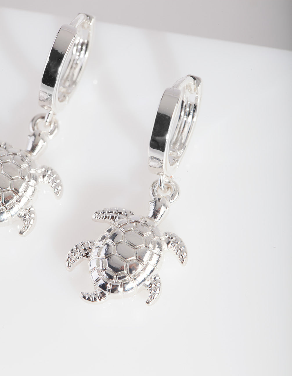 Stack up the style with these huggie earrings! This pair features a silver-toned sea turtle charm design.