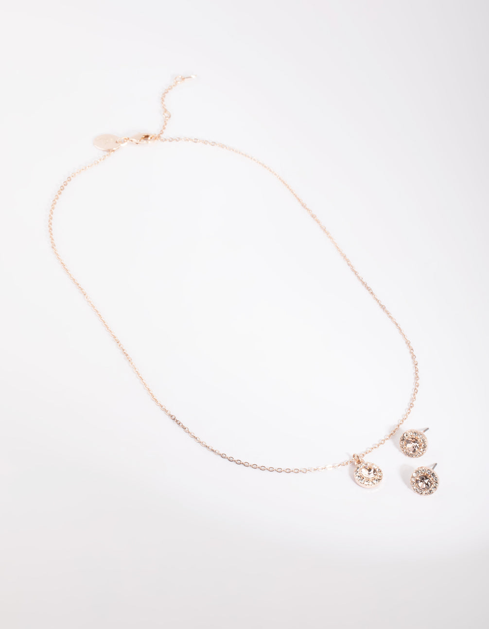 Rose Gold Diamond Simulant Circle Necklace & Earrings Set