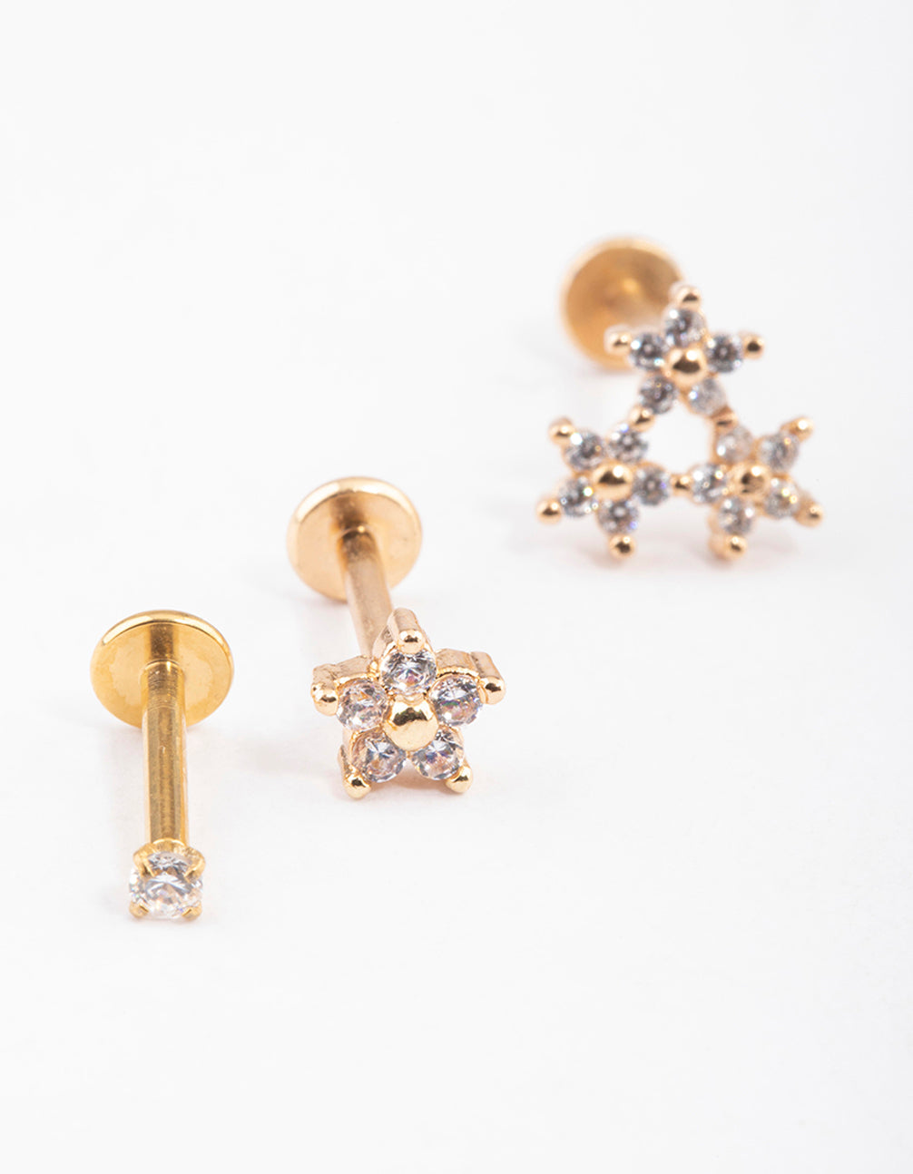 Gold Plated Titanium Cubic Zirconia Floral Flat Back Pack