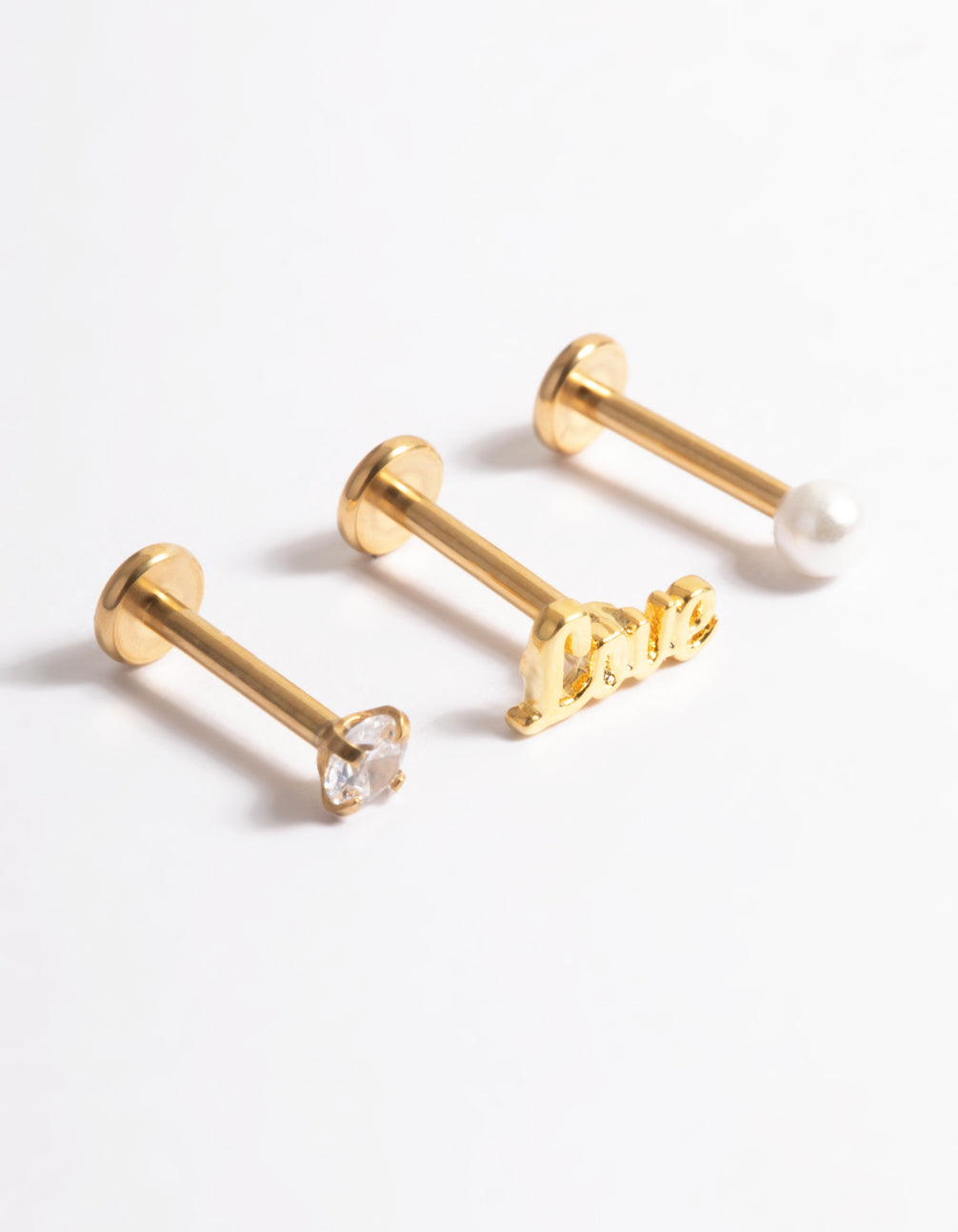 Gold Plated Titanium Cubic Zirconia Love Flat Back Pack
