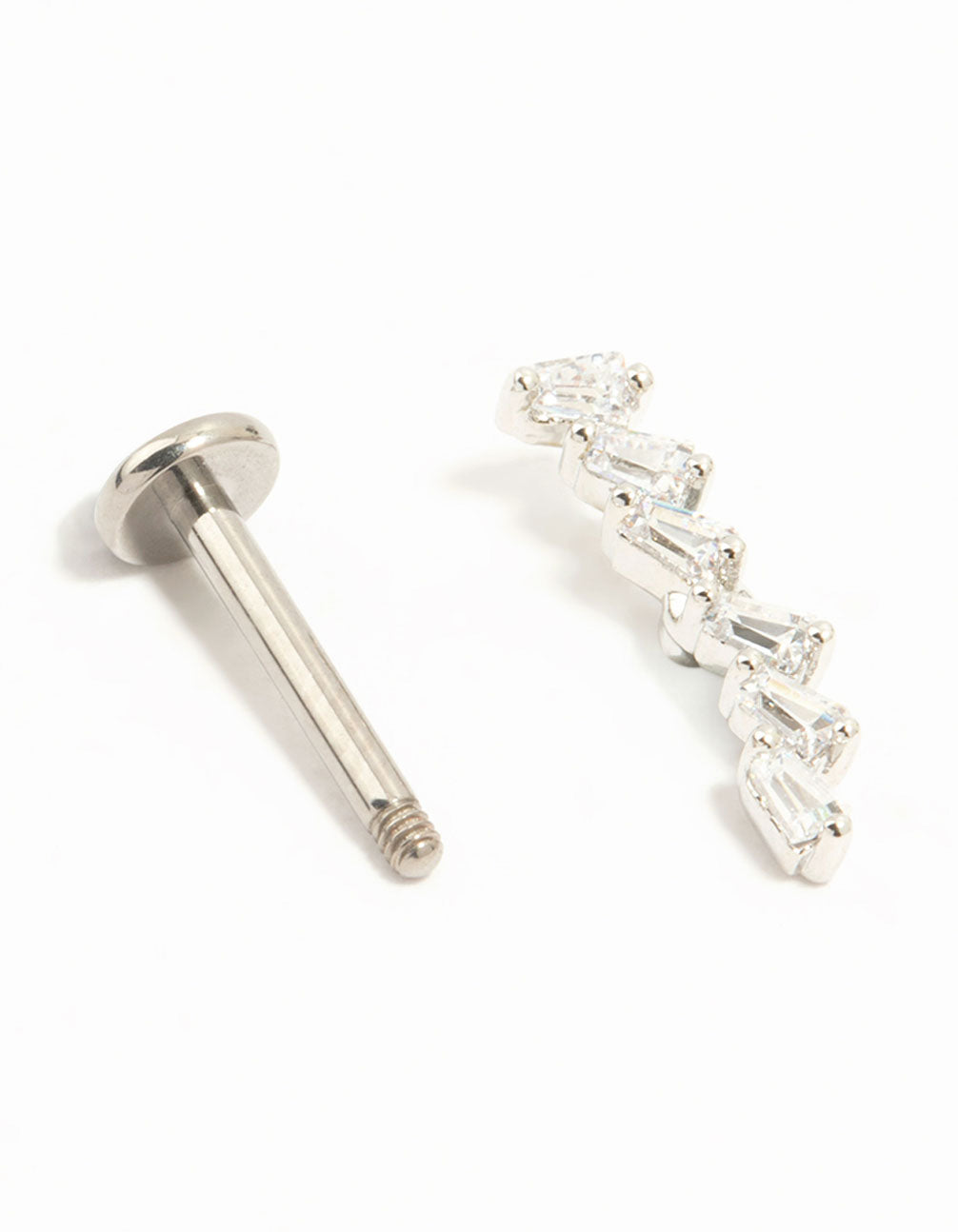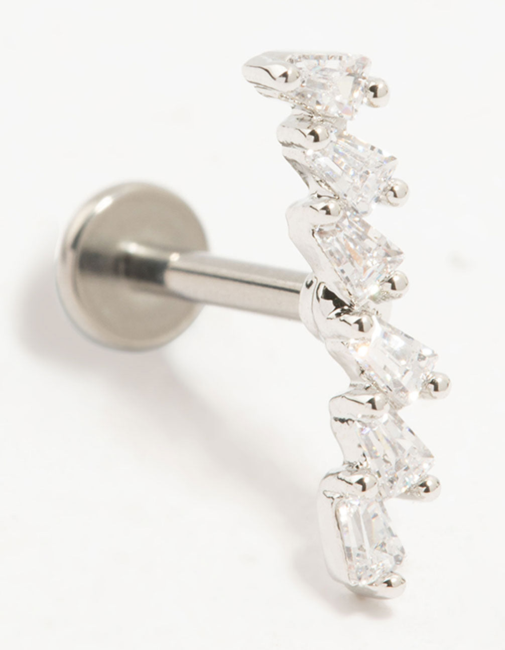 Meet the Titanium Baguette Cubic Zirconia Crawler Flat Back stud! Crafted from high-quality surgical steel, it boasts a chic baguette cut for a touch of elegance. Perfect for any piercing, it's gentle on sensitive skin and ideal for everyday wear.