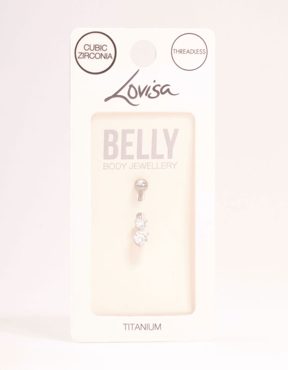 Jazz up your belly piercing with this titanium bar! It features double-layered cubic zirconia crystals for extra shimmer and a threadless style for effortless wear. This belly bar features a threadless style, for a secure fit and also makes it easier for stud to be removed.