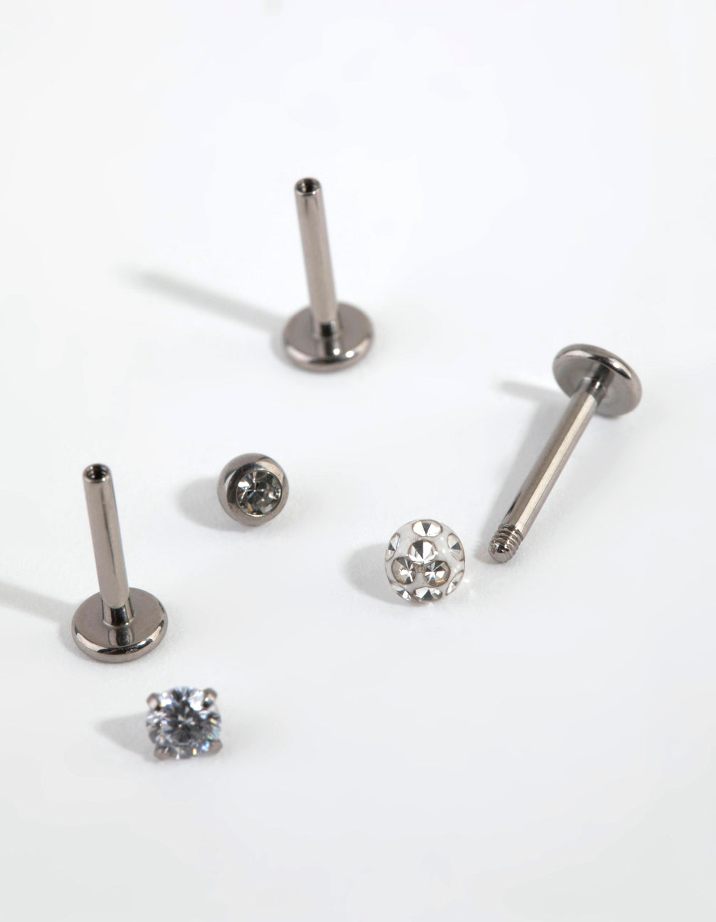 Express your individuality with Lovisa body jewellery! This earring pack includes three studs which have flat backs for your comfort. They are made with titanium, which is gentle on ears. Each stud measures 16G/1.2mm.