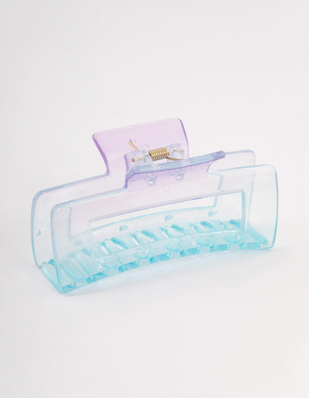 - This medium-sized, '90s-inspired claw clip features an iridescent, blue coating for a minimalist look.