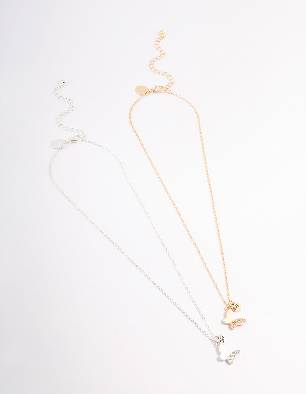 - This necklace two-pack includes two chains, one gold and one silver with a butterfly pendant - perfect for you and your bestie!