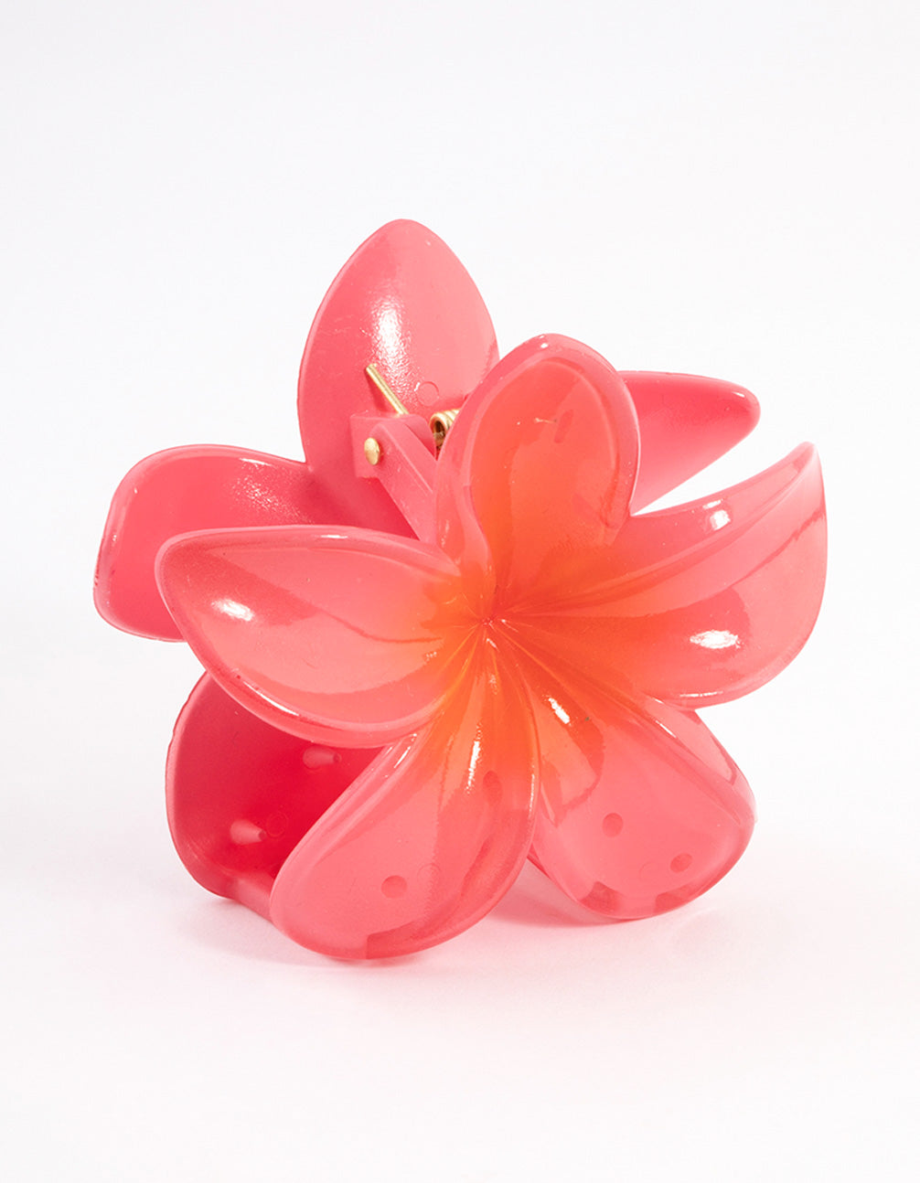 - This small claw clip features a pink, frangipani flower design - perfect for elevating your up-do.