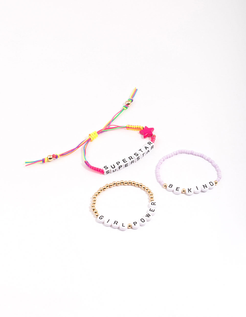 This bracelet multi-pack includes three beaded and colourful cord bracelets, perfect for styling stacked together or sharing with your besties.