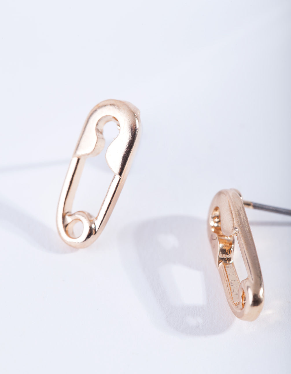 Elevate your daily ensemble with this stunning gold-toned mini safety pin stud earring.