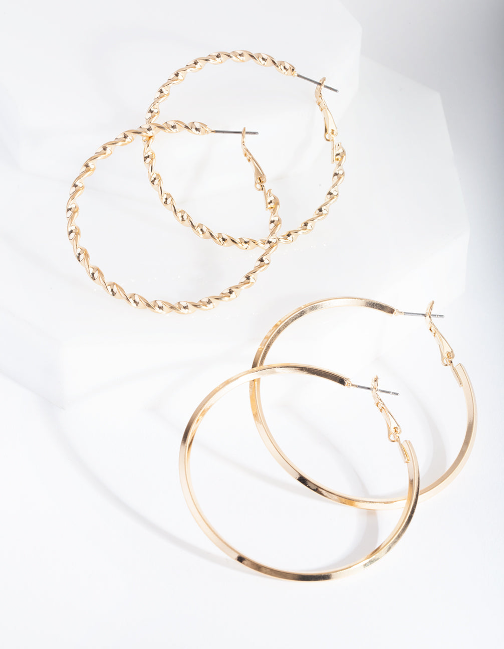 Be bold, be beautiful. This gold-toned hoop earring set features a 2 pack of varying textured. Classic and fabulous, these earrings are a must-have for your collection. Style with gold-toned chain layered necklaces and scattered dainty rings for an on-trend finish!