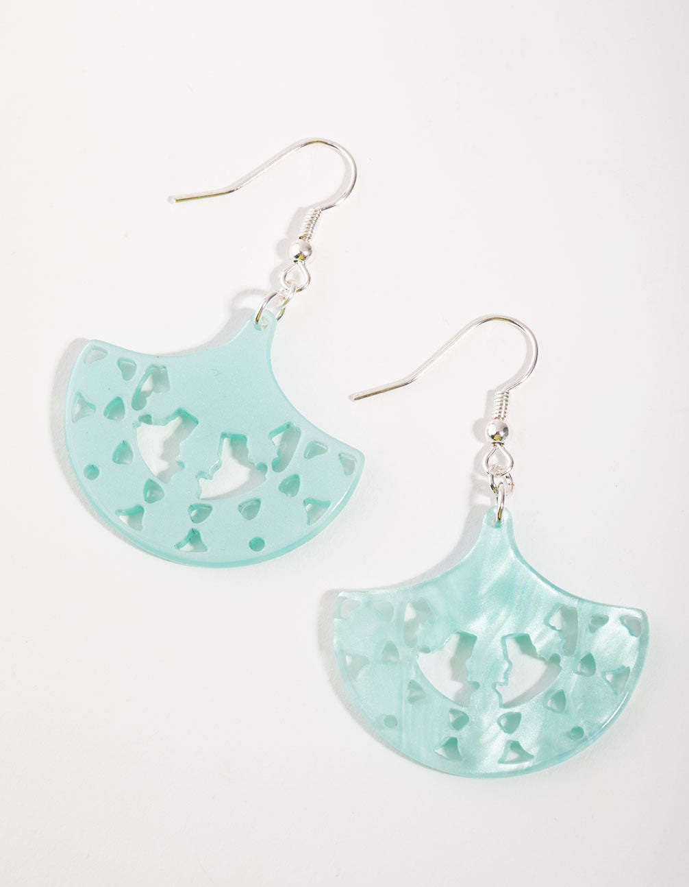 Add a pop of colour to your outfit with a fun pair of fashion earrings! These gorgeous earrings feature a fan design and are bright baby blue. They have a fun 90s vibe. Wear these and give your outfit a funky flair!