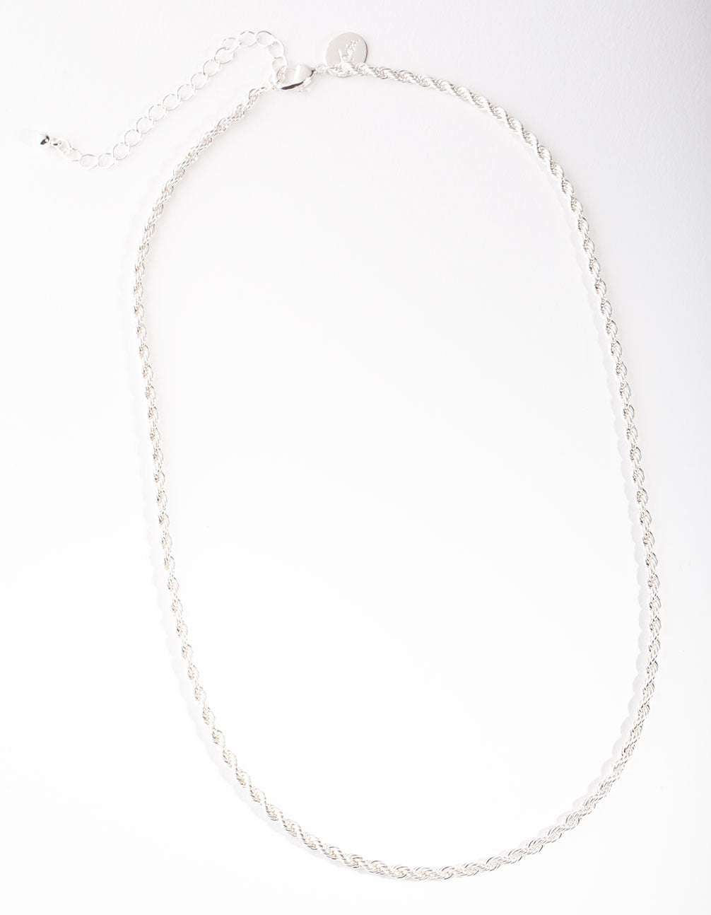 Round out your collection with a staple fine chain necklace. This style comes with a silver-toned setting and a twisted chain design. Style with other chain and and pendant necklace designs and a chunky ring multi-pack for an on-trend look.