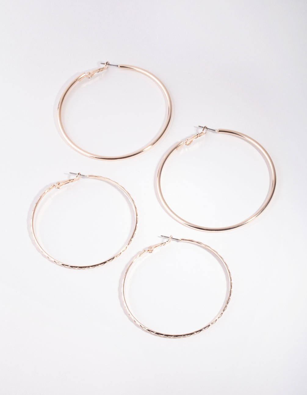 Hoops are an outfit staple that are perfect for elevating any ensemble. This pack includes two large rose-gold-toned hoops that are sure to bring all eyes to you!
