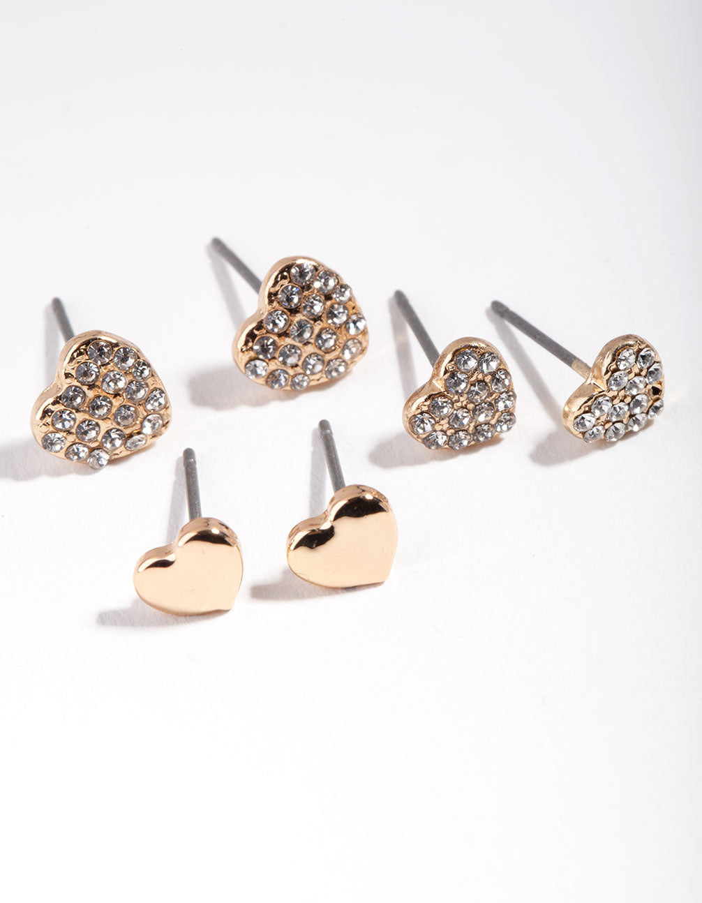 Stud earrings make great staples. On their own, they add a touch of delicate glamour to your outfit or they can be layered with other pieces to create a curated look just for you. These lovely gold-toned, heart-shaped studs will surely make you shine.
