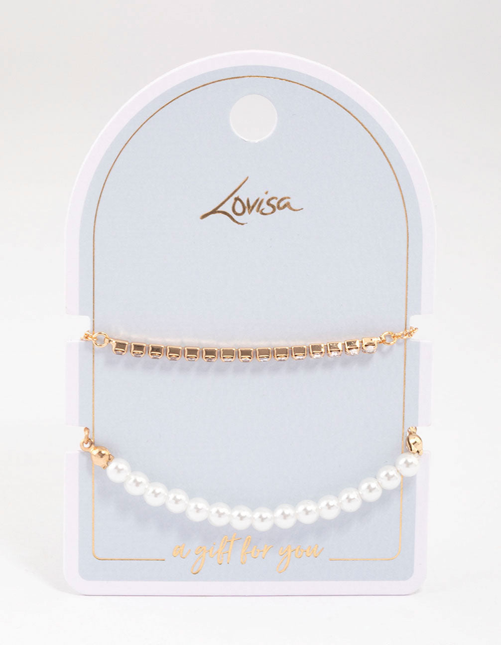 Gold Pearl & Cup Chain Chain Bracelet Pack