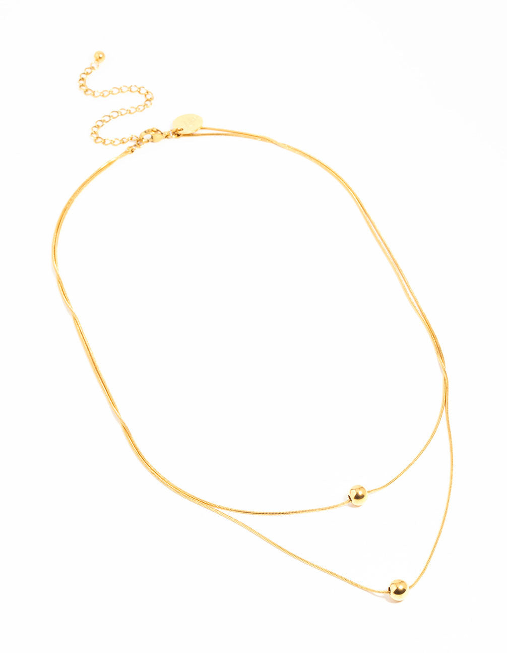 Waterproof Gold Plated Stainless Steel Ball Pendant Layered Necklace