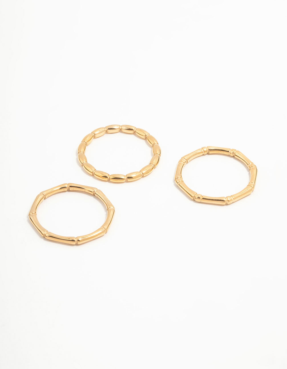 Waterproof Gold Plated Stainless Steel Bamboo Rings 3-Pack