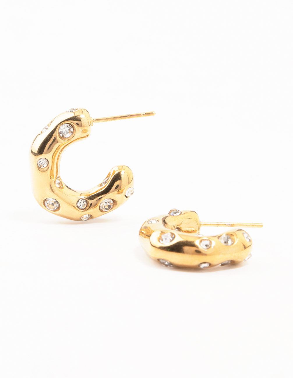 Waterproof Gold Plated Stainless Steel Crystal Molten Hoop Earrings