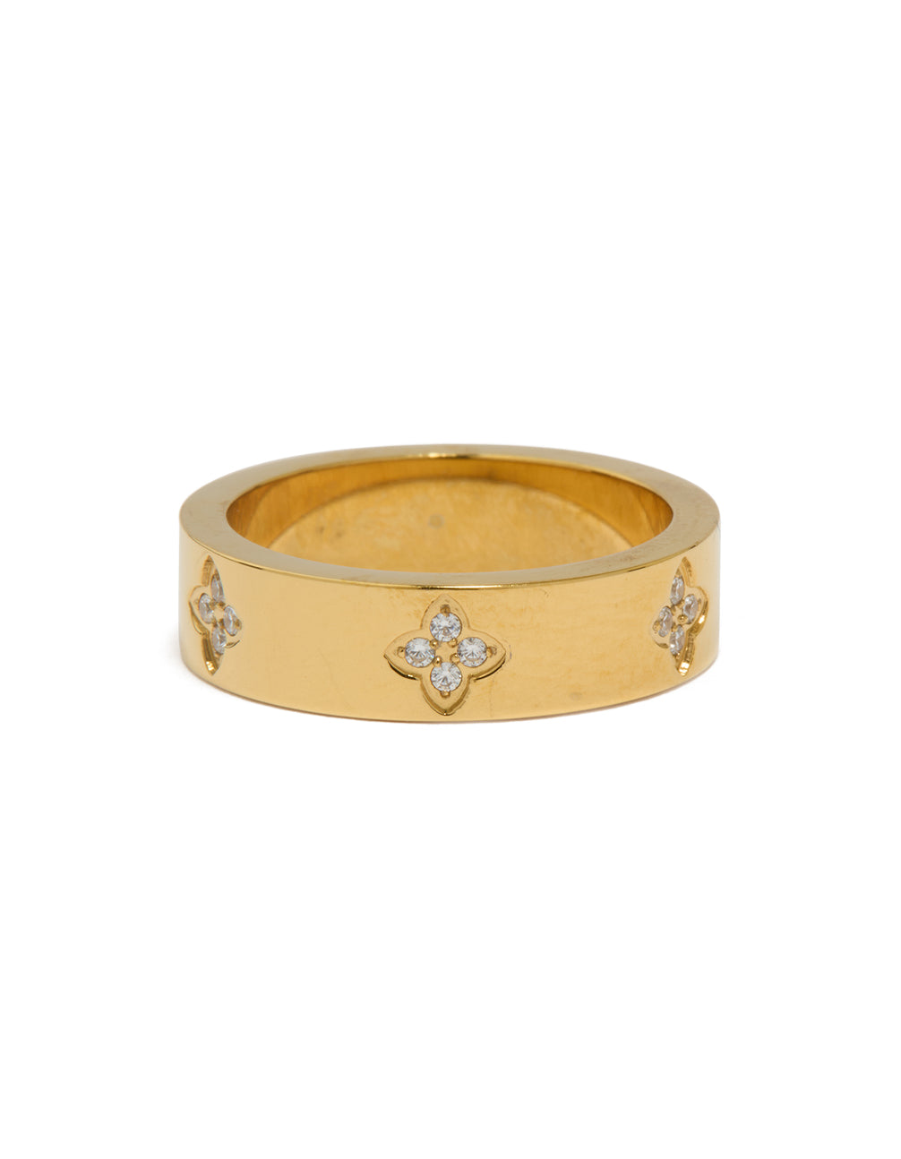 Waterproof Gold Plated Stainless Steel Cubic Zirconia Flower Band Ring