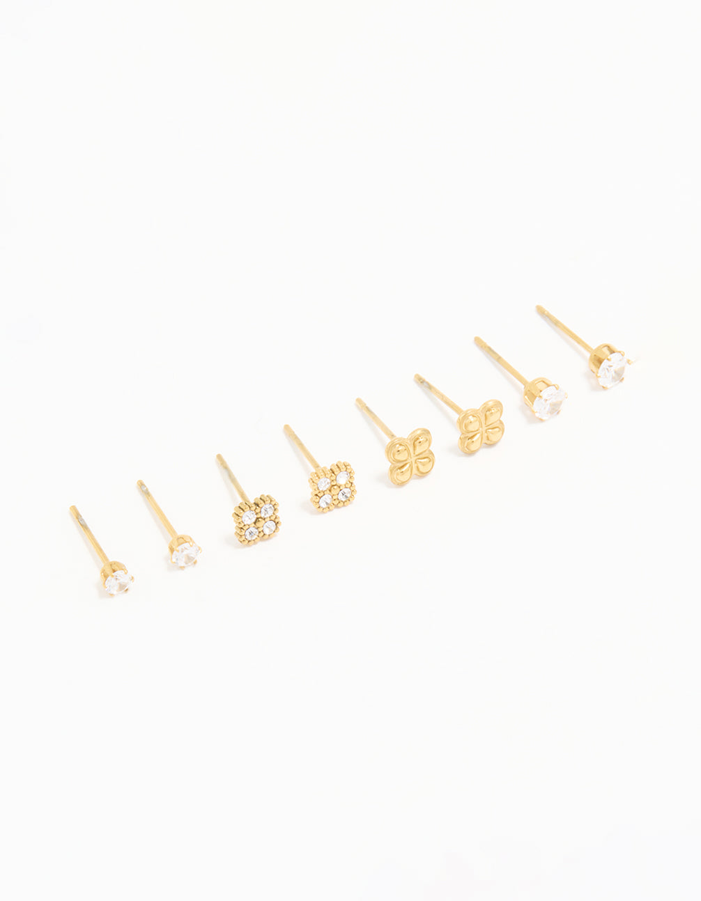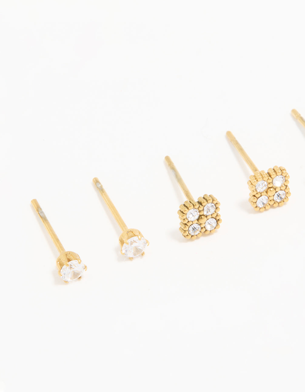 Waterproof Gold Plated Stainless Steel Cubic Zirconia Flower & Classic Stud Earrings 4-Pack Waterproof Gold Plated Stainless Steel Cubic Zirconia Flower & Classic Stud Earrings 4-Pack Waterproof Gold Plated Stainless Steel Cubic Zirconia Flower & Classic Stud Earrings 4-Pack