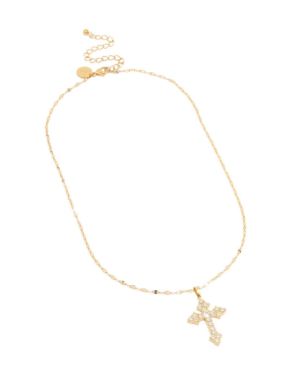 Waterproof Gold Plated Stainless Steel Cubic Zirconia Gothic Cross Fine Necklace