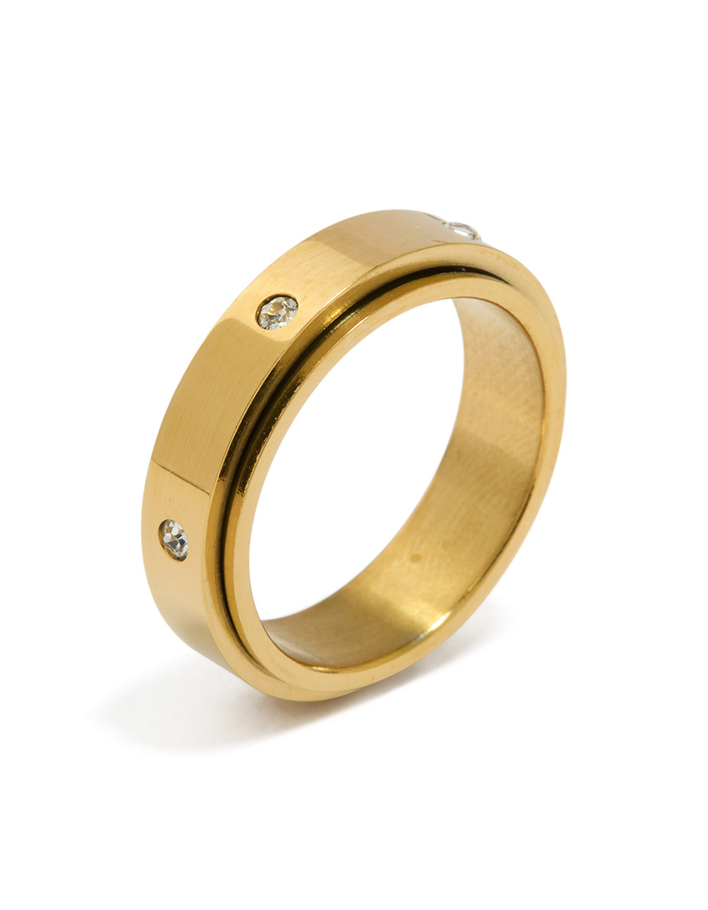 Waterproof Gold Plated Stainless Steel Cubic Zirconia Spinner Ring