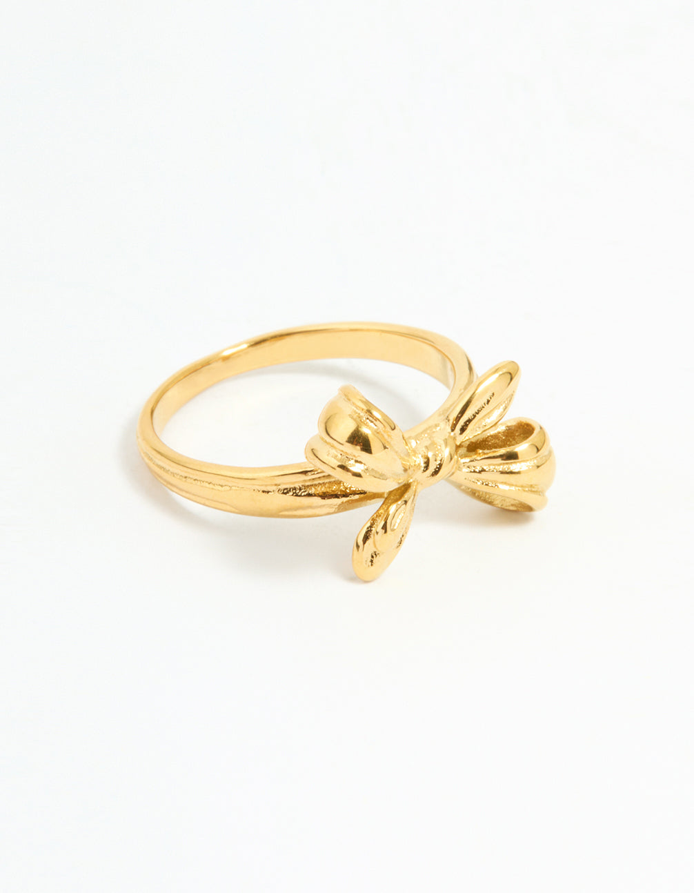 • Waterproof Gold Plated Stainless Steel Dainty Bow Ring - link has visual effect only