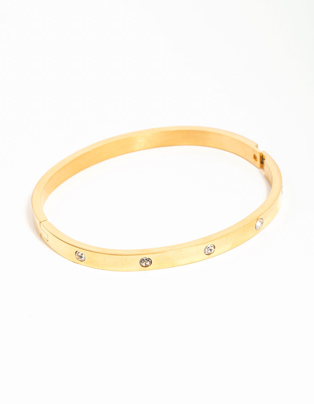 Waterproof Gold Plated Stainless Steel Diamante Hinged Bangle