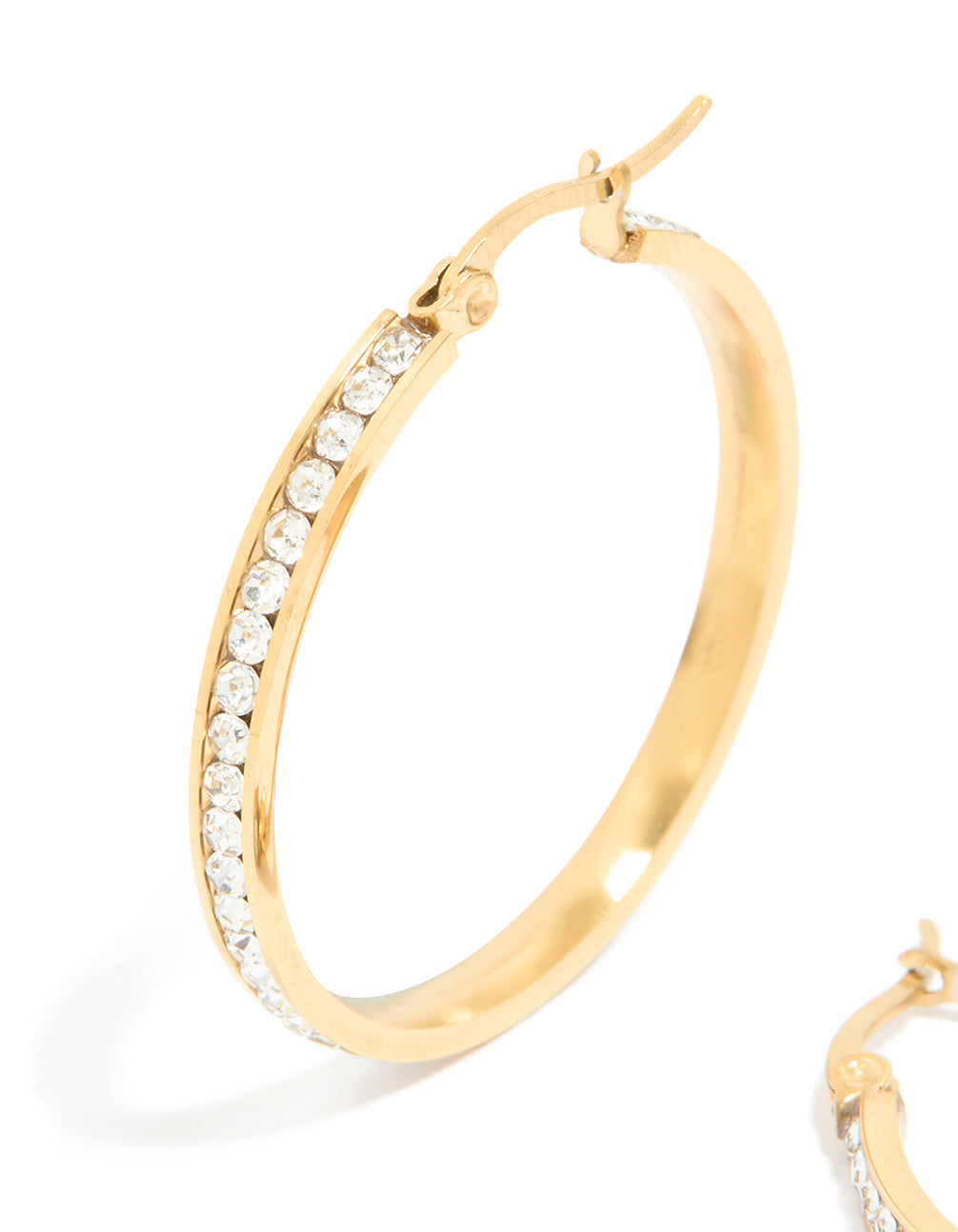 Waterproof Gold Plated Stainless Steel Diamante Hoop Earrings 35 MM