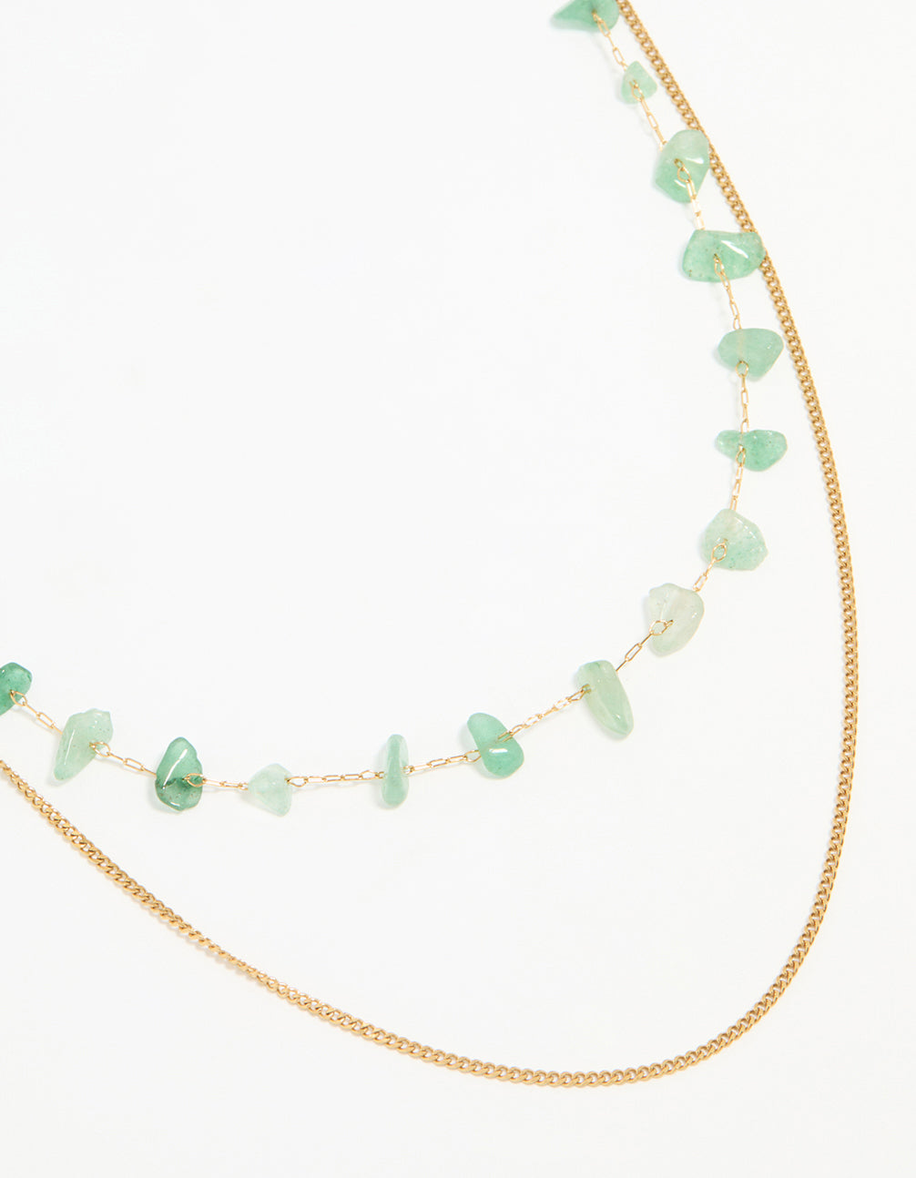 Waterproof Gold Plated Stainless Steel Green Stone Layered Necklace