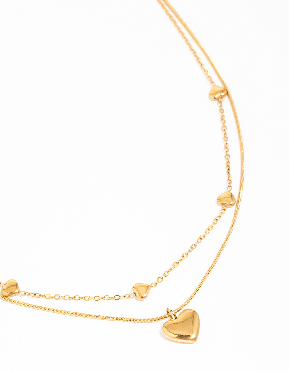 Waterproof Gold Plated Stainless Steel Heart Pendant Layered Necklace