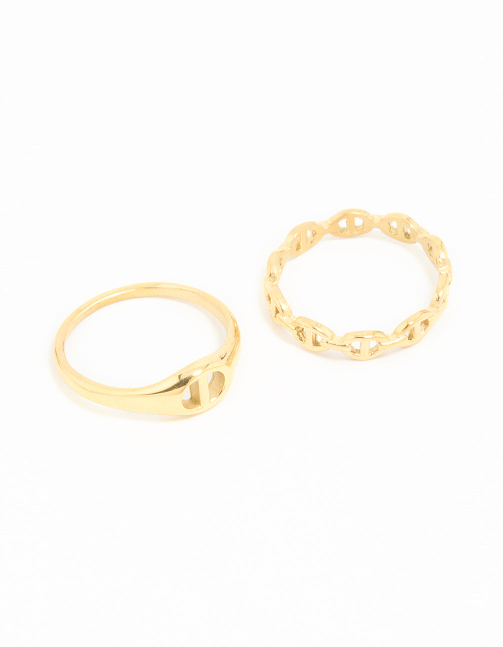 Waterproof Gold Plated Stainless Steel Link Stacking Rings 2-Pack Waterproof Gold Plated Stainless Steel Link Stacking Rings 2-Pack Waterproof Gold Plated Stainless Steel Link Stacking Rings 2-Pack
