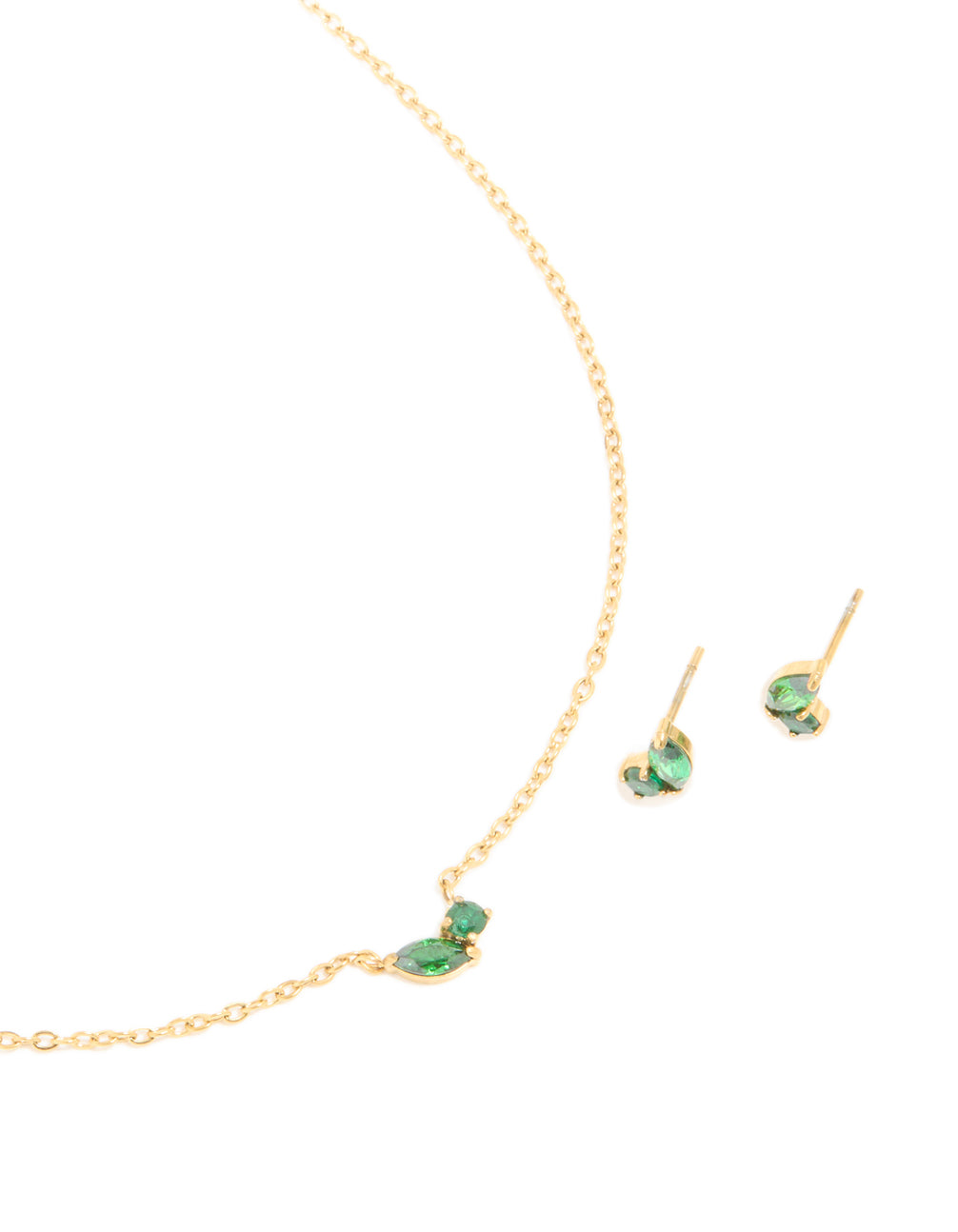 Waterproof Gold Plated Stainless Steel May Green Cubic Zirconia Birthstone Necklace & Earrings Set