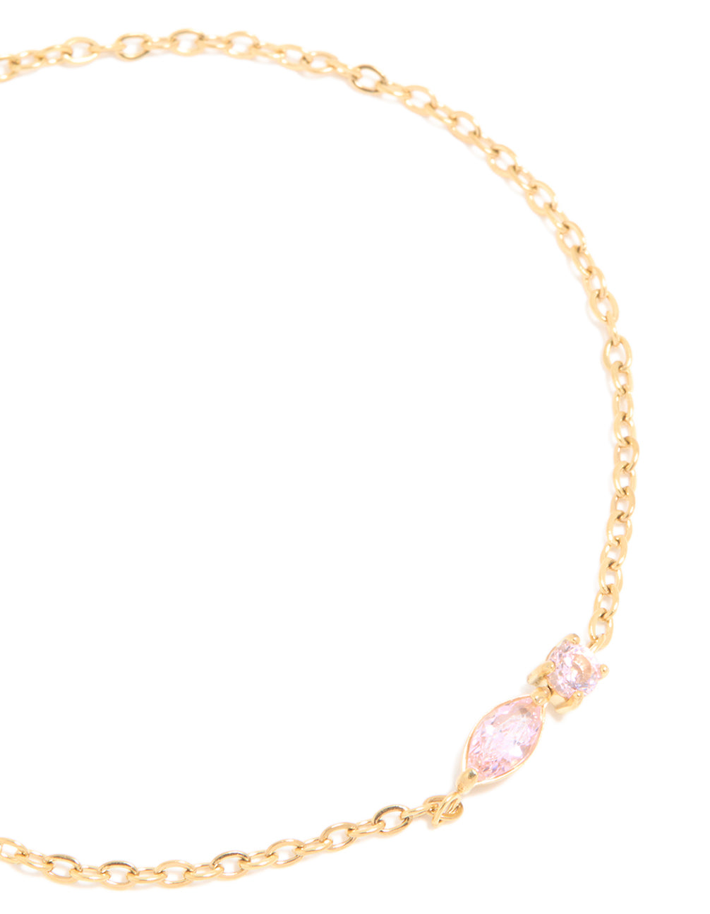 Waterproof Gold Plated Stainless Steel October Pink Cubic Zirconia Birthstone Bracelet