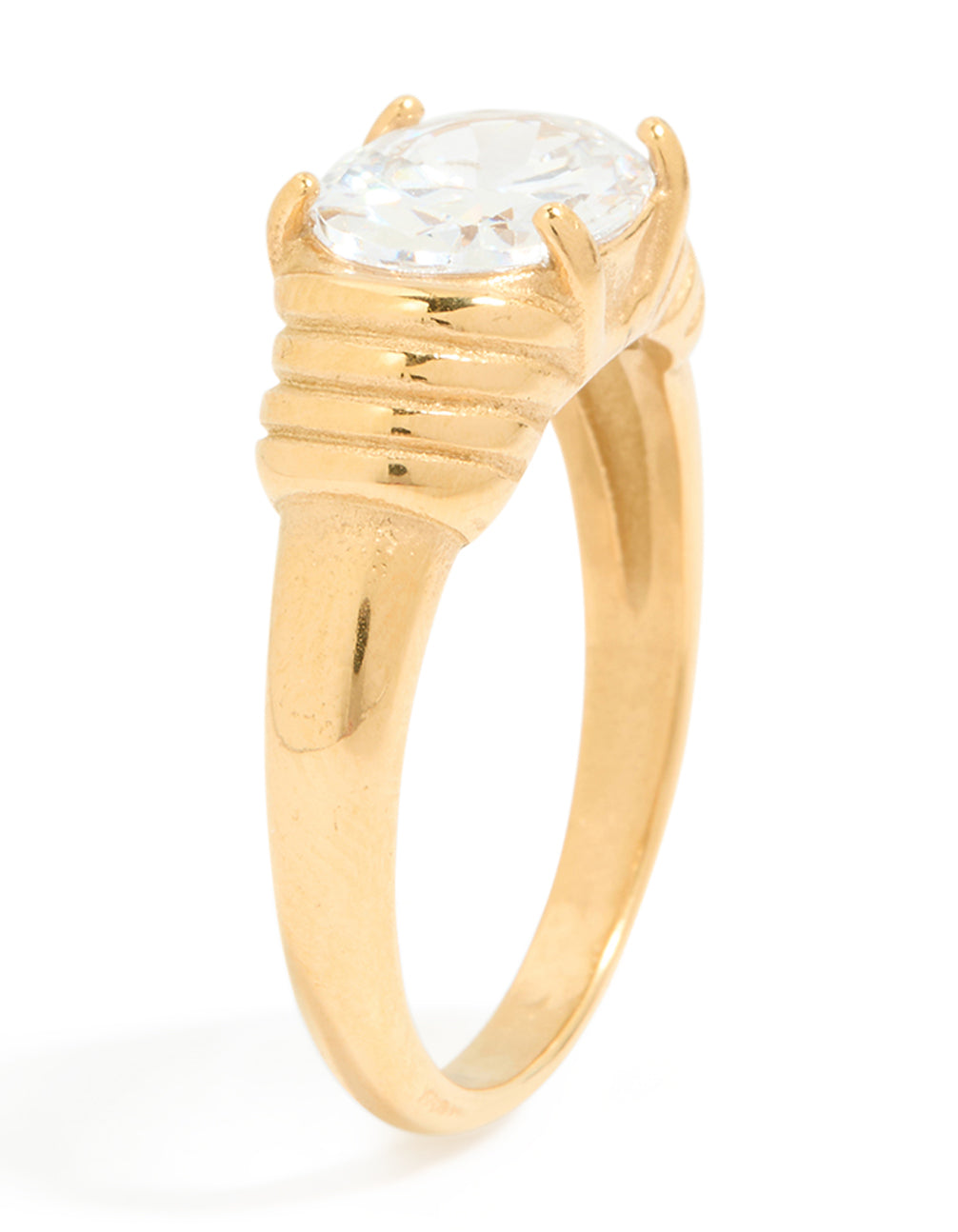 Waterproof Gold Plated Stainless Steel Oval Cubic Zirconia Ribbed Ring