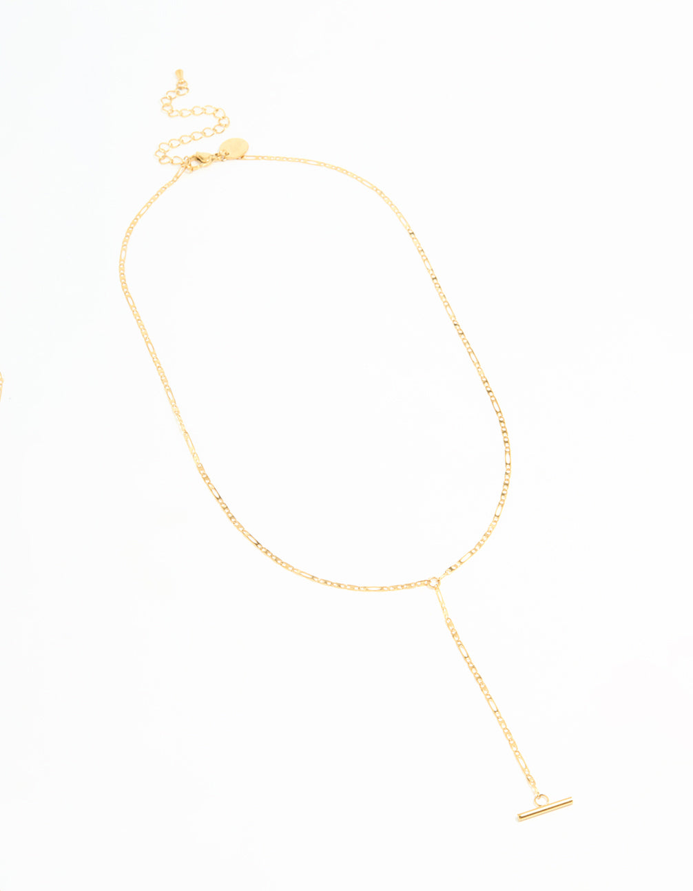 Waterproof Gold Plated Stainless Steel T-Bar Necklace