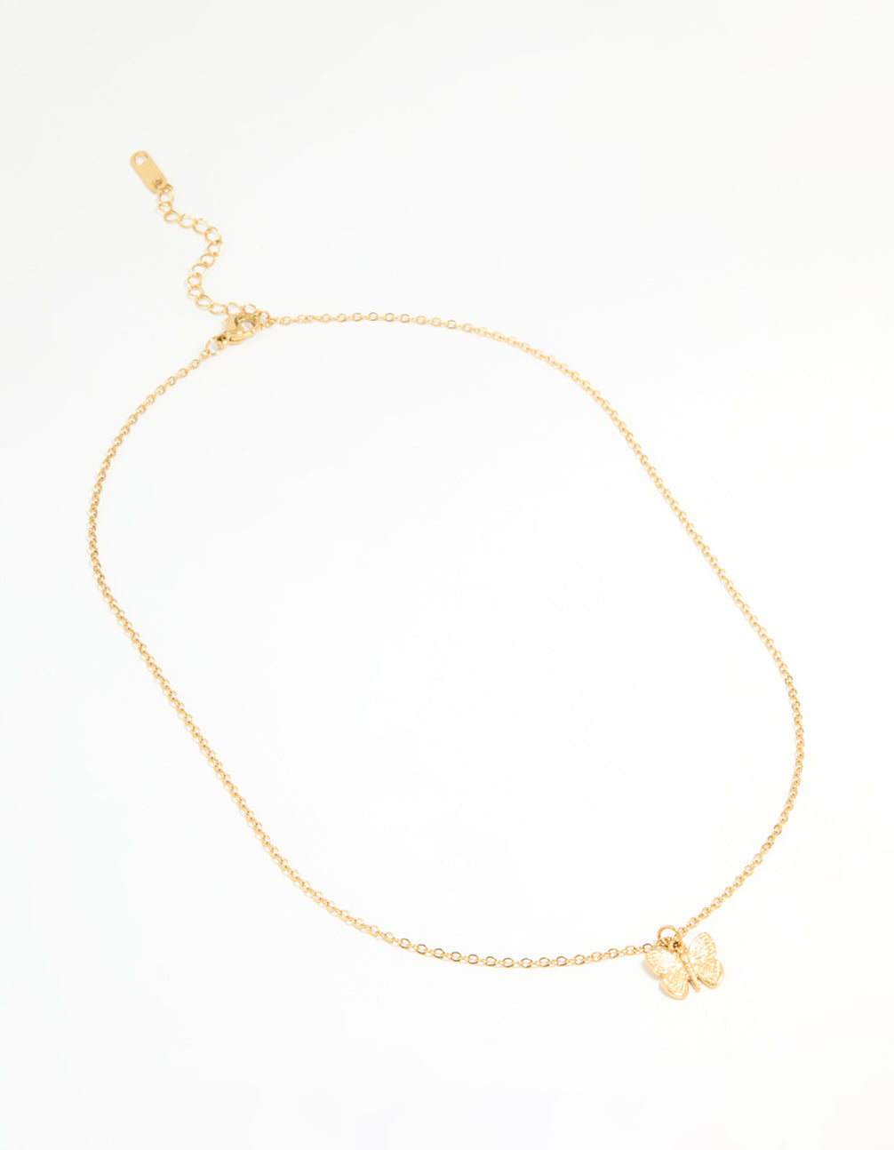 Waterproof Gold Plated Stainless Steel Textured Butterfly Necklace