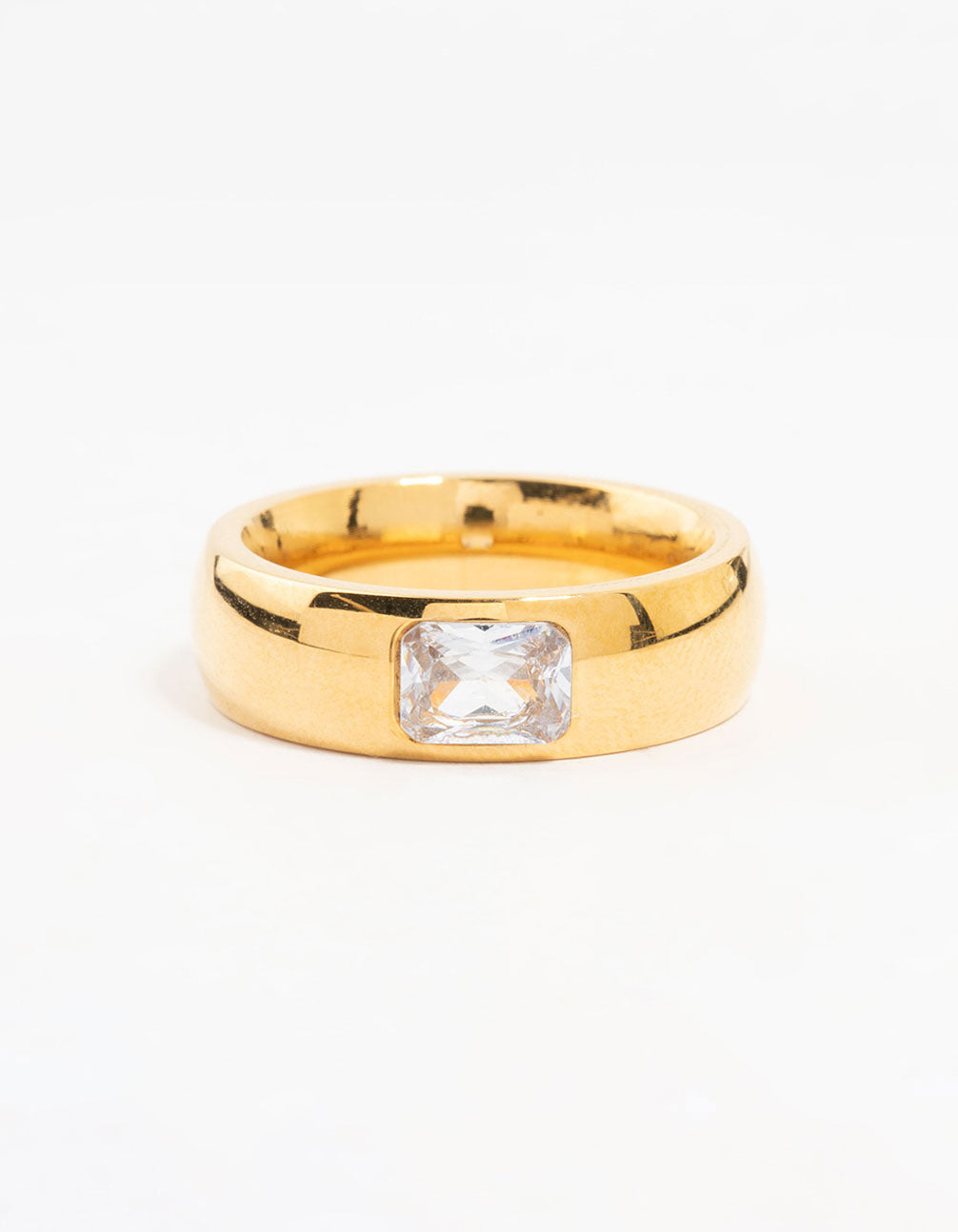 Waterproof Gold Plated Stainless Steel Wide Band Cubic Zirconia Ring Waterproof Gold Plated Stainless Steel Wide Band Cubic Zirconia Ring Waterproof Gold Plated Stainless Steel Wide Band Cubic Zirconia Ring
