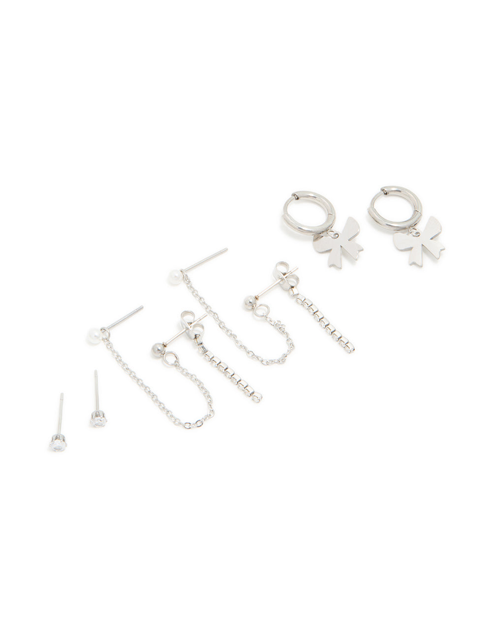 Waterproof Stainless Steel Cubic Zirconia Bow Chain Earrings 3-Pack
