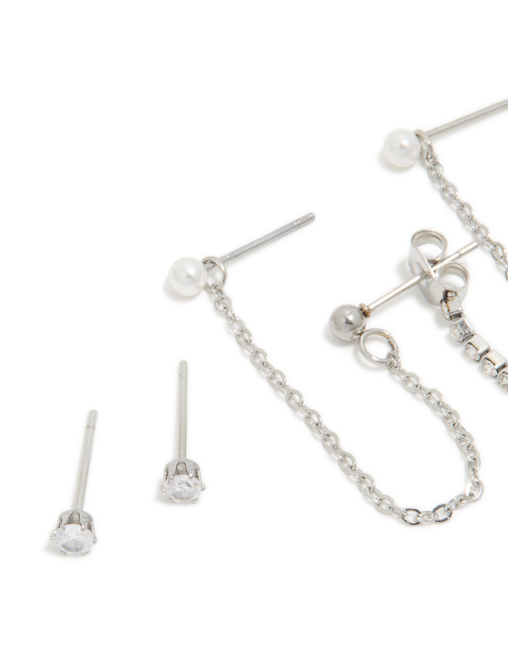 Upgrade your jewellery game with this Waterproof Stainless Steel Cubic Zirconia Bow Chain Earrings Pack. This versatile set includes three pairs of stainless steel earrings designed to be sweat, swim, and shower proof—perfect for your on-the-go lifestyle. Featuring elegant cubic zirconia crystal studs, stylish chain design earrings, and playful bow huggie earrings, this pack is made for mixing and matching. The durable, waterproof metal ensures you can rock these earrings from brunch to beach days or even your next big night out. Pair them with casual jeans and a tee or your favourite party dress to add the perfect touch of sparkle and style.