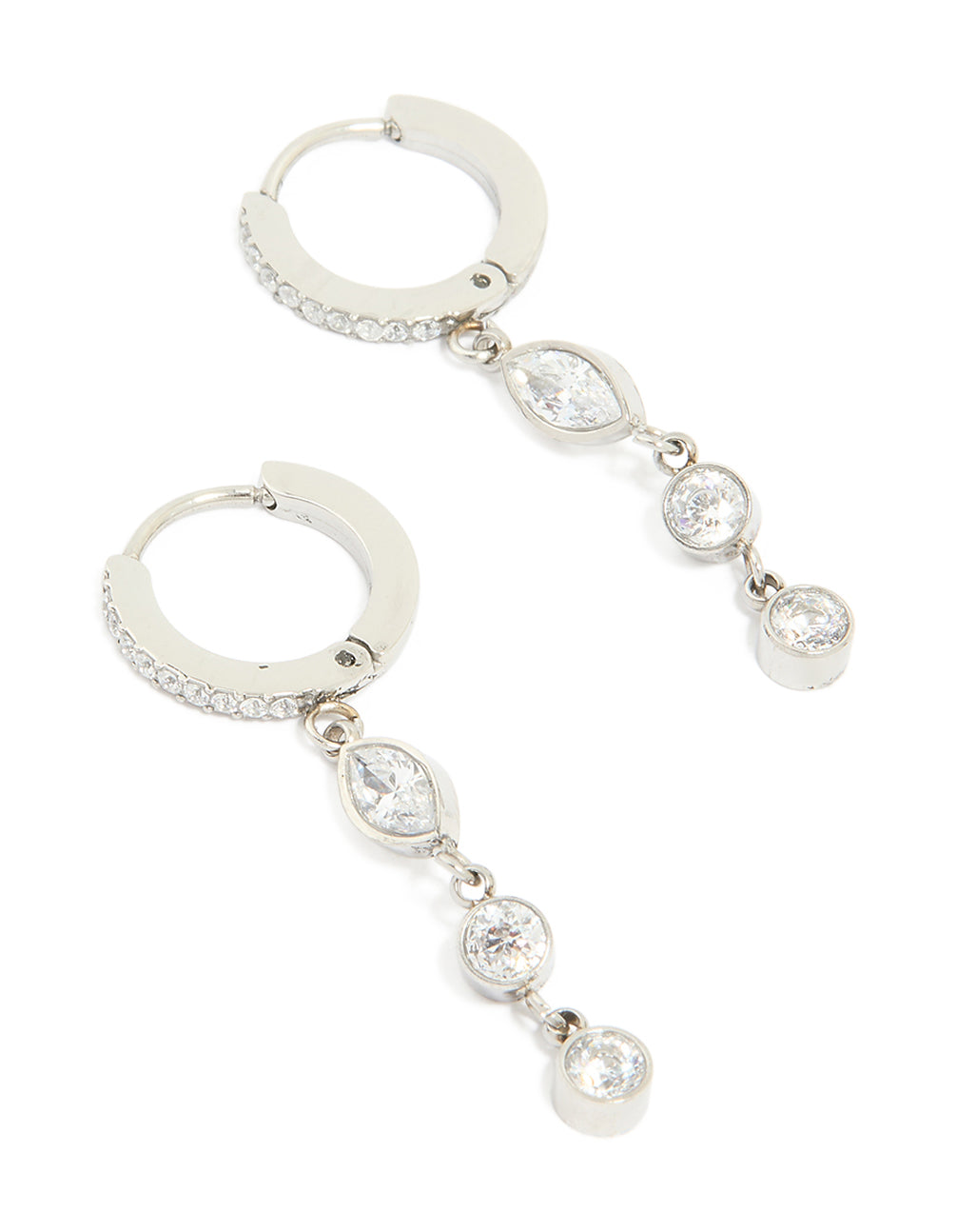 Waterproof Stainless Steel Cubic Zirconia Huggie Drop Earrings