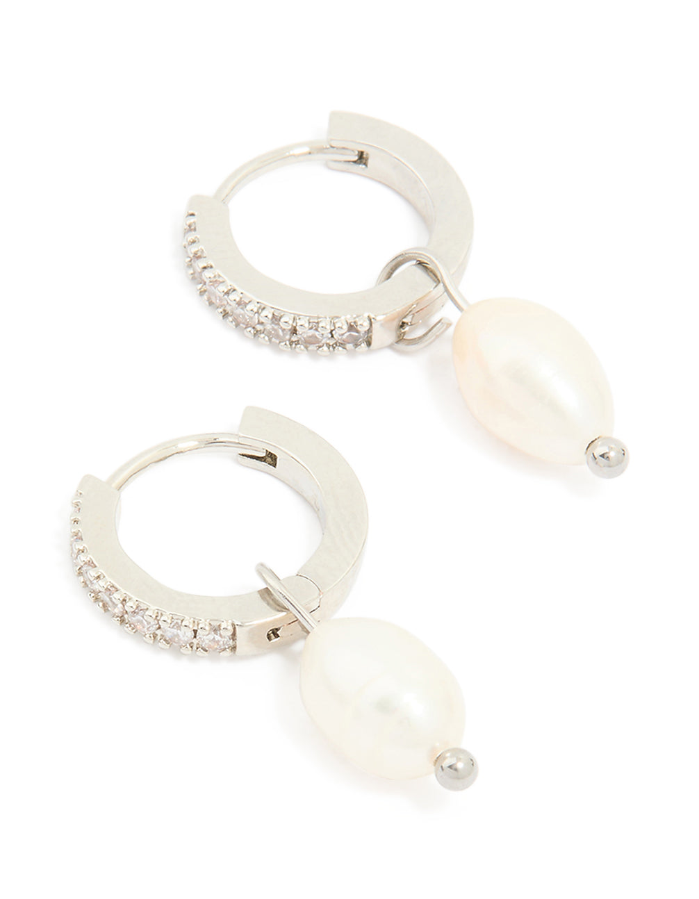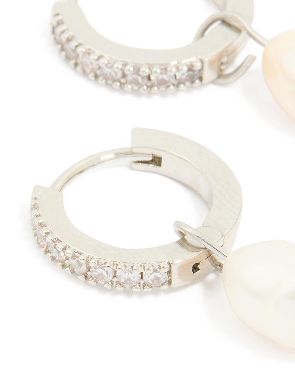 Waterproof Stainless Steel Diamante Freshwater Pearl Drop Huggie Earrings