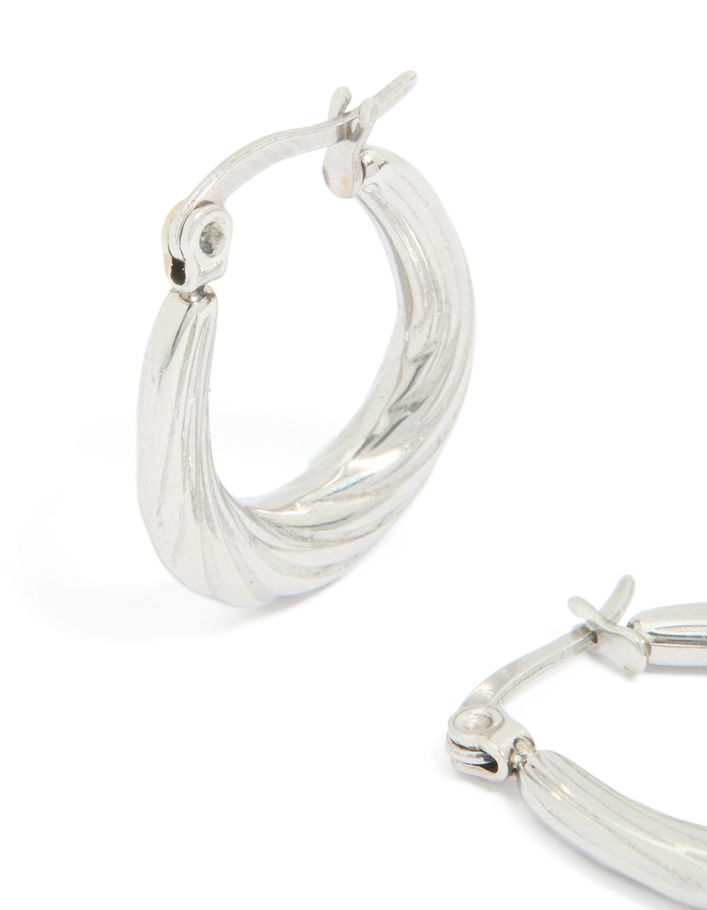 • Waterproof Textured Stainless Steel Oval Hoop Earrings - link has visual effect only