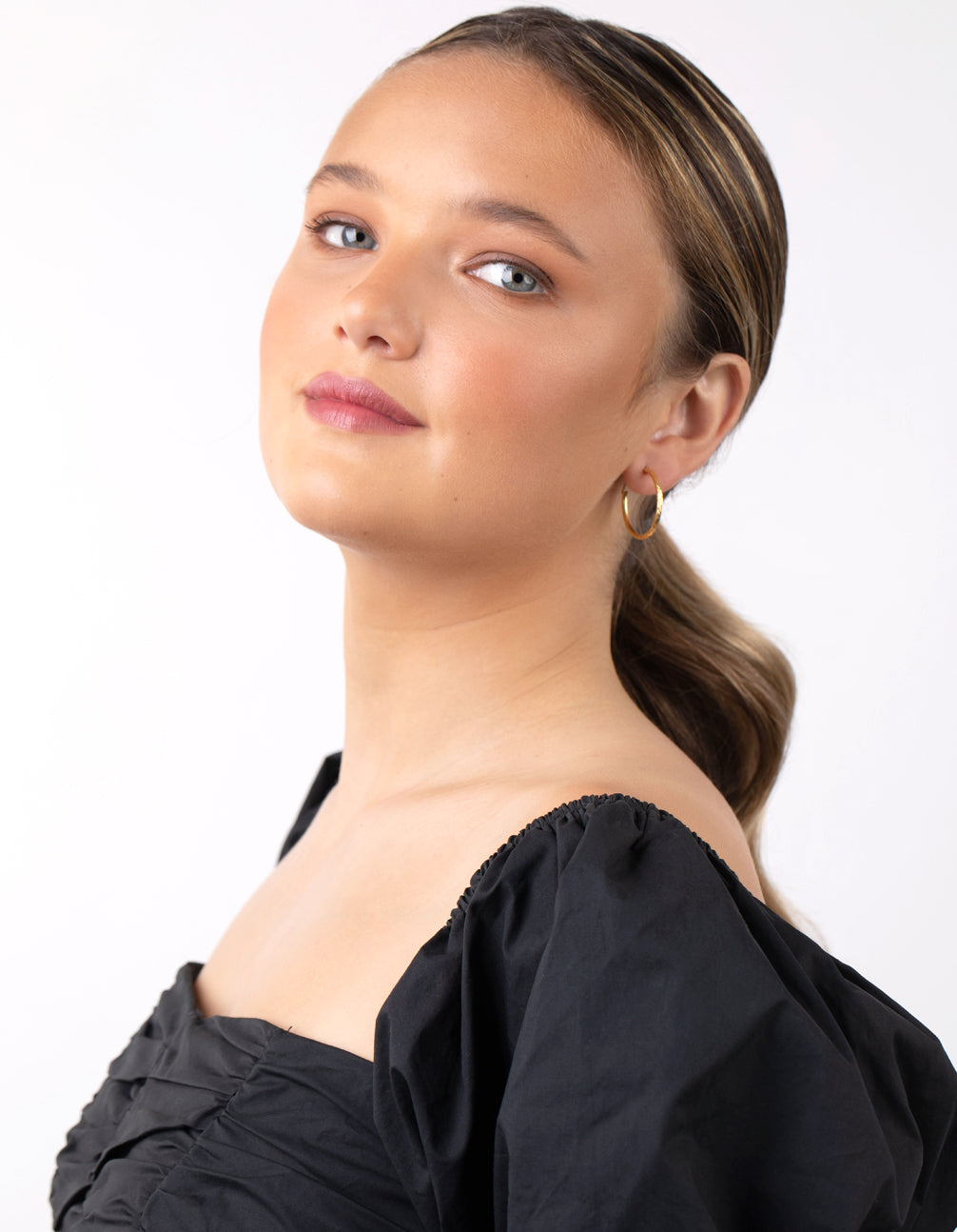 Almost any outfit can be elevated with a pair of classic hoop earrings. Invest in a quality pair with these lovely gold-plated sterling silver hoops, which feature a pretty diamond-cut design.