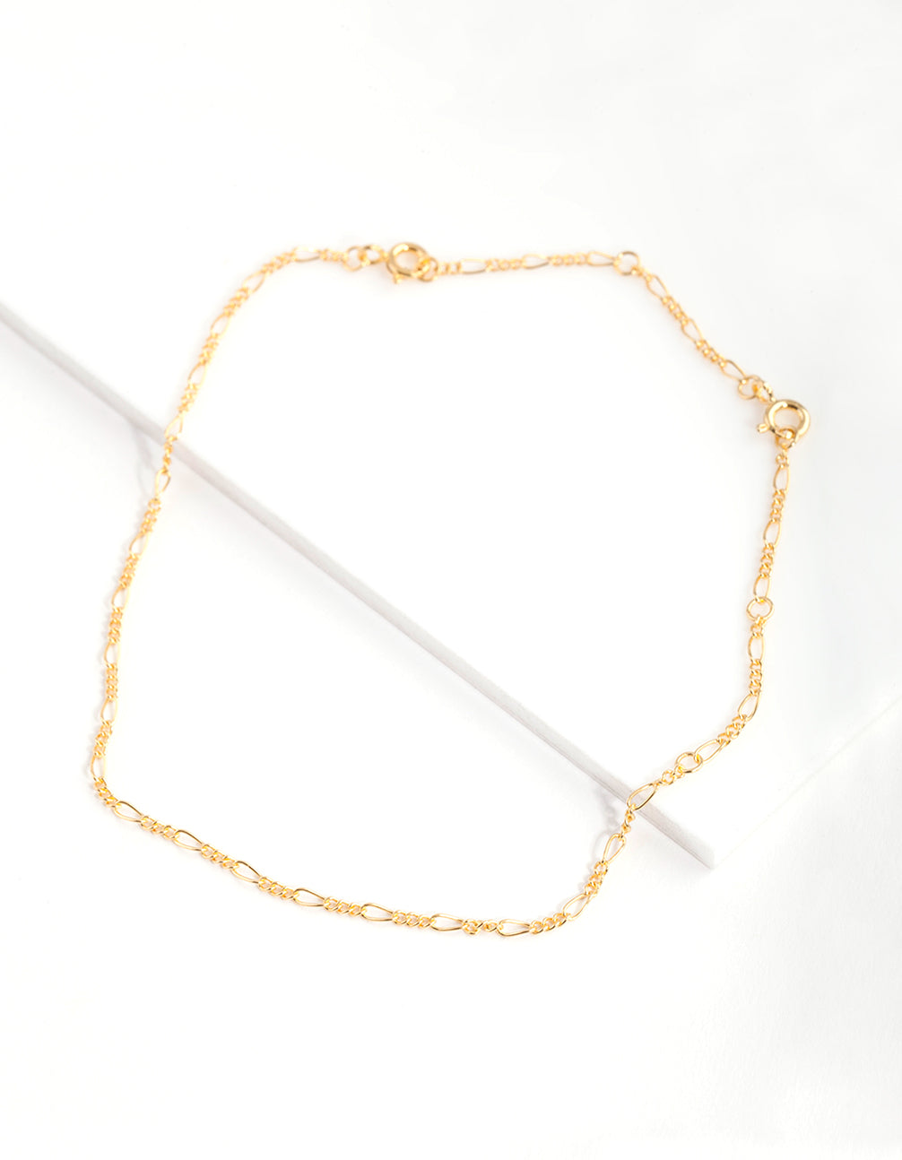 Gold Plated Sterling Silver Figaro Chain Bracelet Anklet