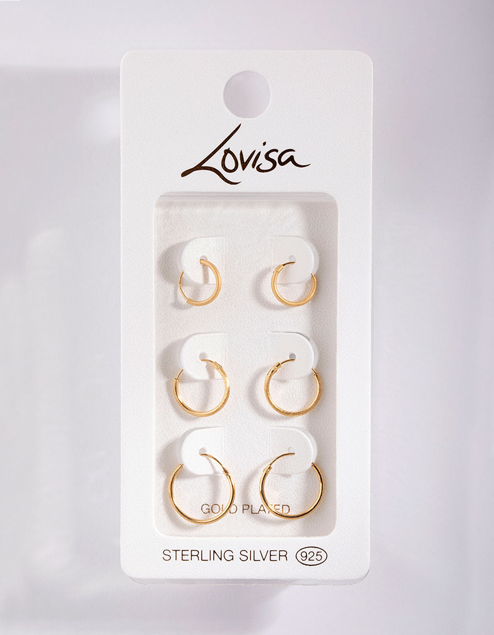 You're precious, so you deserve precious metals! Elevate your basics collection with this earring pack, which features sterling silver sleeper hoops with genuine gold plating. This pack includes three pairs of gold earrings which are perfect for daily wear.