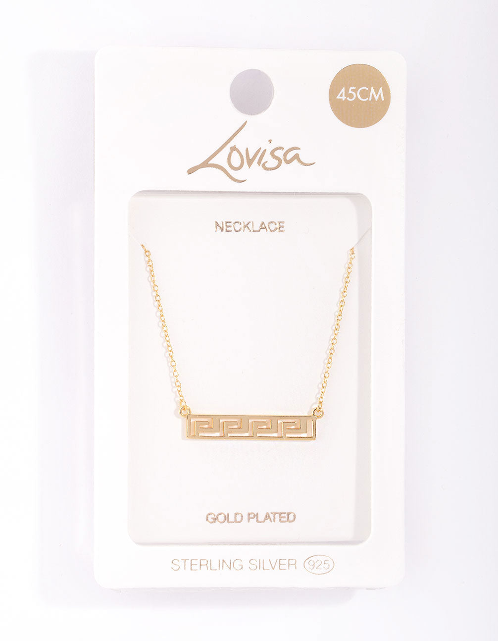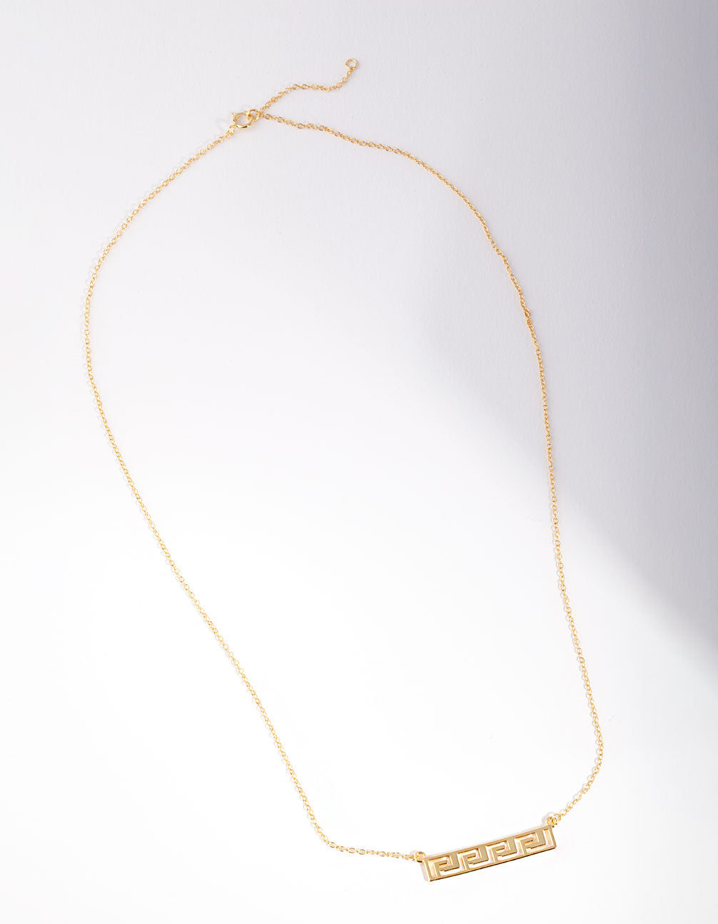 It's all about shapes and texture. Add intrigue and detail to your outfit with this gold-plated sterling silver geometric bar style, the dainty chain and stunning pendant make for the perfect finish to your outfit. Style with crisp white cotton or linen for for a warm summer finish.
