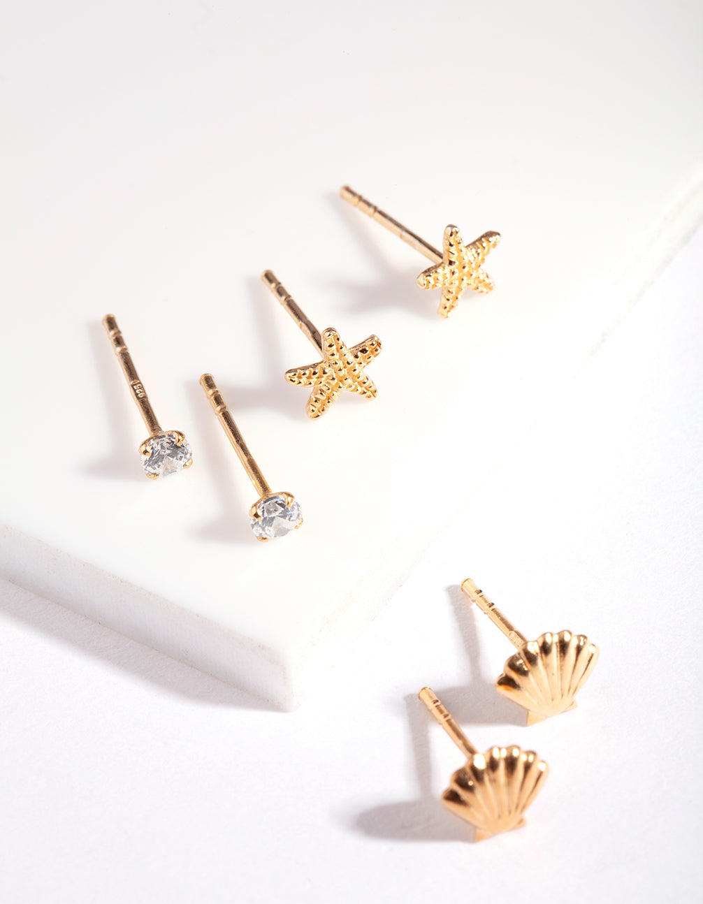 Gold Plated Sterling Silver Seaside Stud Earring Pack
